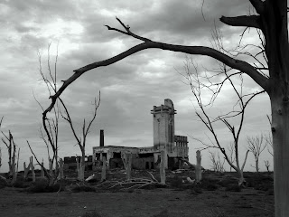 Gran dilema, donde colocar las fotos del viaje por pueblos olvidados, polvorientos y abandonados de las Provincias de Buenos Aires y La Pampa, aquí seguro que no, sólo ésta que plantea el dilema, donde subir entonces las tomas de ese lugar sombrío, fantasmal pero cargado de una belleza sin igual como lo es la Villa Epecuén, o lo que el agua devolvió de sus entrañas, mientras pienso dejo ésta única imágen, solitaria, haciendo honor al sitio que retrata.