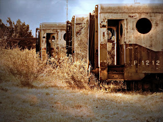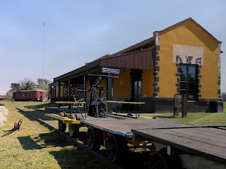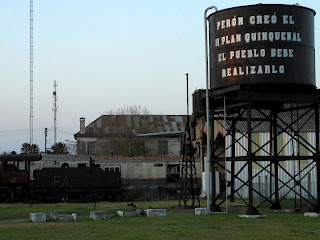 Las fotos muestran a la estación nueva, al cabín de señales manuales, a las dos generaciones de locomotoras que hacen titilar una pequeña luz de esperanza a quienes bregamos por la no extinción del tren, ruinas arqueológicas perdidas, y ruinas recuperadas en un pequeño museo casualmente cerrado, tanques de agua que hablan, vagones que habitan charcos de agua y una toma que me remite a esas pelis ambientadas en los desiertos tejanos. Hay muchas más que irán a parar al blog ferroviario, por aquí desfilarán tomas de la ciudad, algunos pueblitos cercanos y lo referente a la colonización de los gauchos judíos.