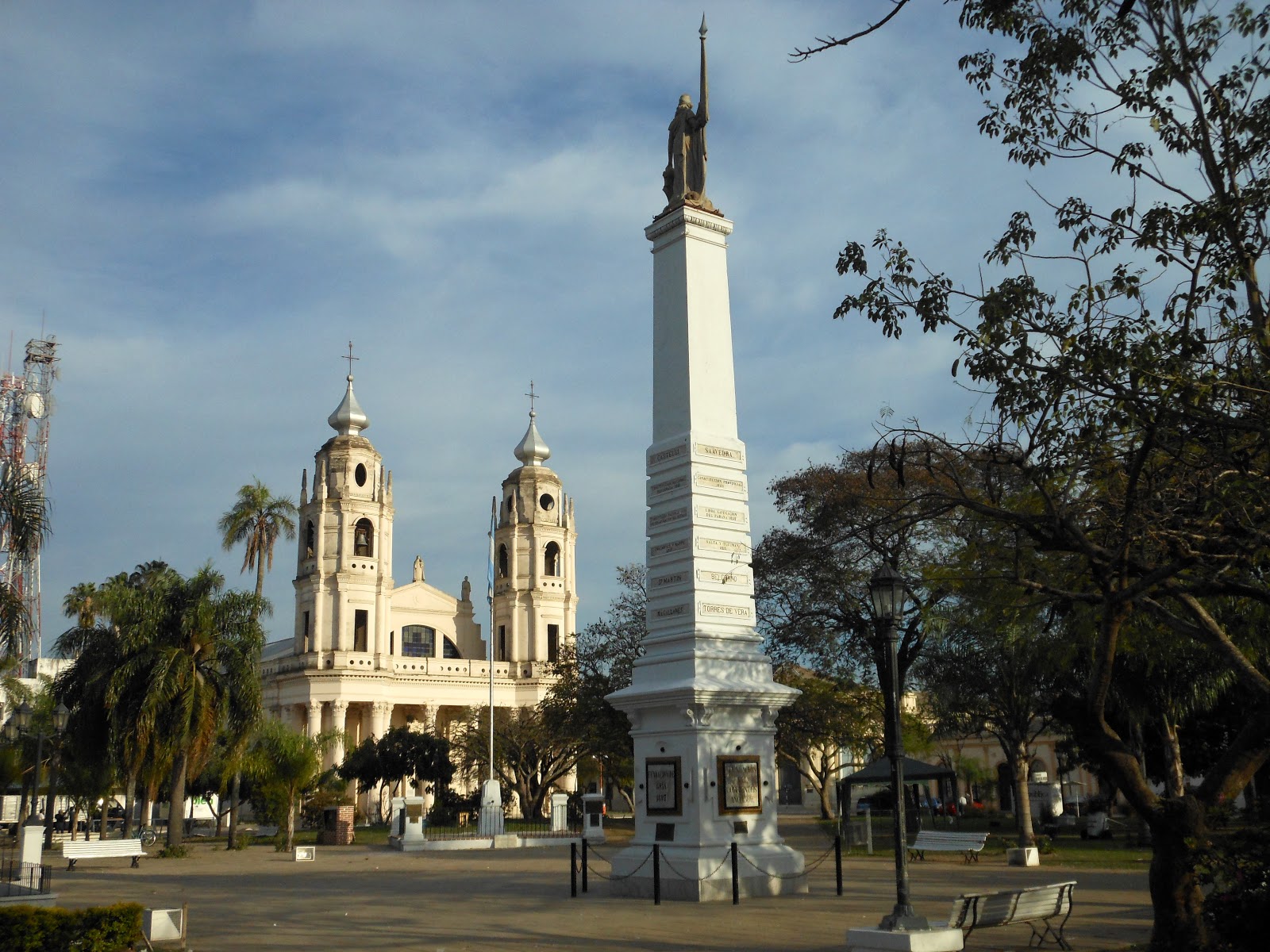 me encuentro con una amplia y fresca plaza principal, su catedral, importante, otra plaza bordeada por casas largas, algunas tiendas, de esas que tienen de todo, propagandas en guaraní, puertas y rejas con un acabado muy fino, edificios institucionales muy academicistas, clásicos que denotan un momento muy próspero para la comunidad, veo poca sustitución edilicia, poca altura en sus construcciones, bien!!!, once millones de motos, la capilla del Barrio San Ramón y un cartel que simboliza el estado de ánimo de una gran porción de argentinos. La ciudad se deja caminar, hay mucha cosa por ver, y eso que olvidé recorrer su teatro, mal viajero, mal lo suyo. Ya parto para Lavalle, la Colonia Carolina y su Capilla del Diablo, espero sorprenderme, tan sólo viajo con una imágen, todo lo demás será descubrimiento.